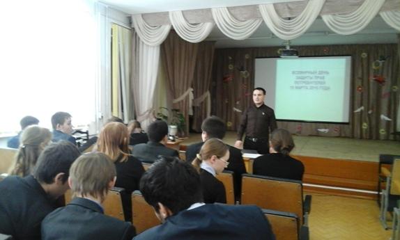 В рамках празднования Всемирного дня защиты прав потребителей 9, 11 марта 2016 года в МОУ "Великопольская средняя общеобразовательная школа" и МОУ "Шулкинская средняя общеобразовательная школа" состоялись встречи начальника Консультационного центра для потребителей Еросланова Григория Анатольевича с учащимися 8-11 классов. Мероприятия были организованы администрацией Оршанского муниципального района.