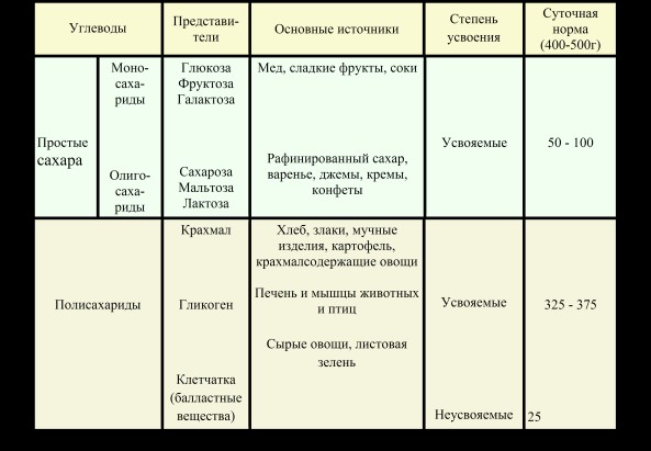 Таблица 2. Общая характеристика углеводов