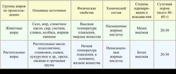 Таблица 3. Общая характеристика жиров.