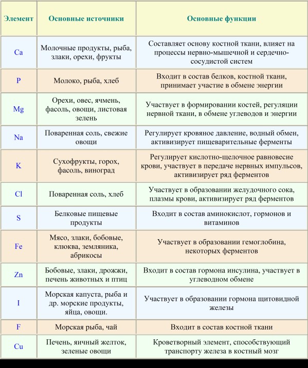 Таблица 4. Общая характеристика основных минеральных веществ.